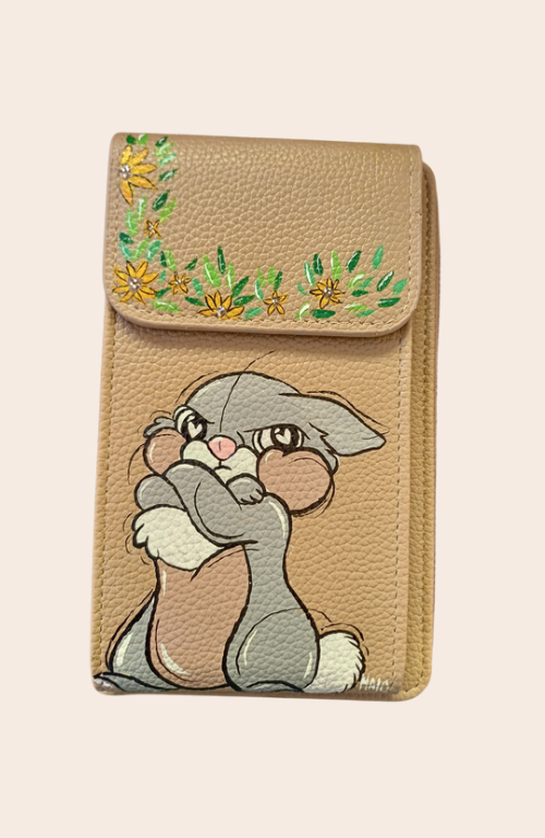 Ce dessin est peint à la main levée en utilisant une peinture spéciale . Ce personnage est revisité . Une fois la peinture achevée , je la fixe , ainsi le dessin ne s’enlève pas . Une fois la peinture bien sèche , je rajoute un verni imperméabilisant . Pour le nettoyer , c’est simple , une crème spéciale simili cuir ou cuir . Le sac est de couleur bleu turquoise .